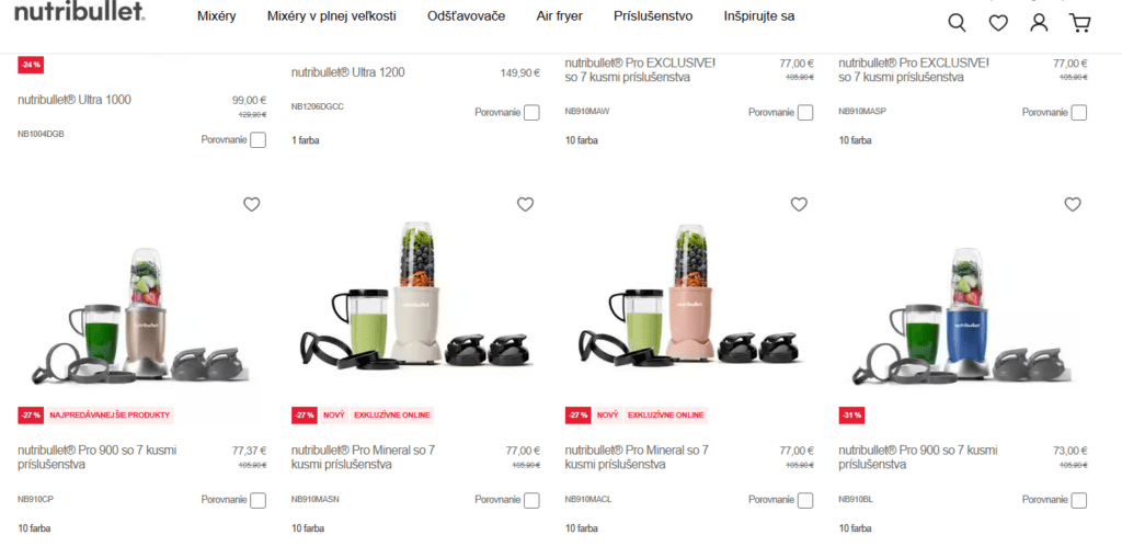 Cena osobných prenosných Nutribullet mixérov sa pohybuje od 60 do 150 € v závislosti od konkrétneho modelu. Nutribullet akcia však môže priniesť zľavy aj na úrovni 20-30 %.